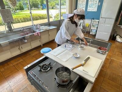 本町にお勤めの栄養技師さんに特別講師としてご指導いただきながら、たまごや野菜を『ゆでる』行程を経た料理に挑戦です!