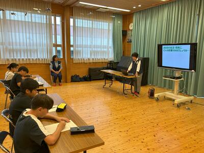 3・4時間目に水泳の授業を受けた疲れも何のその、真剣な表情で講師に来ていただいた埼玉県警察本部の薬物乱用防止指導「あおぞら」の皆さんの話を聞いていました。